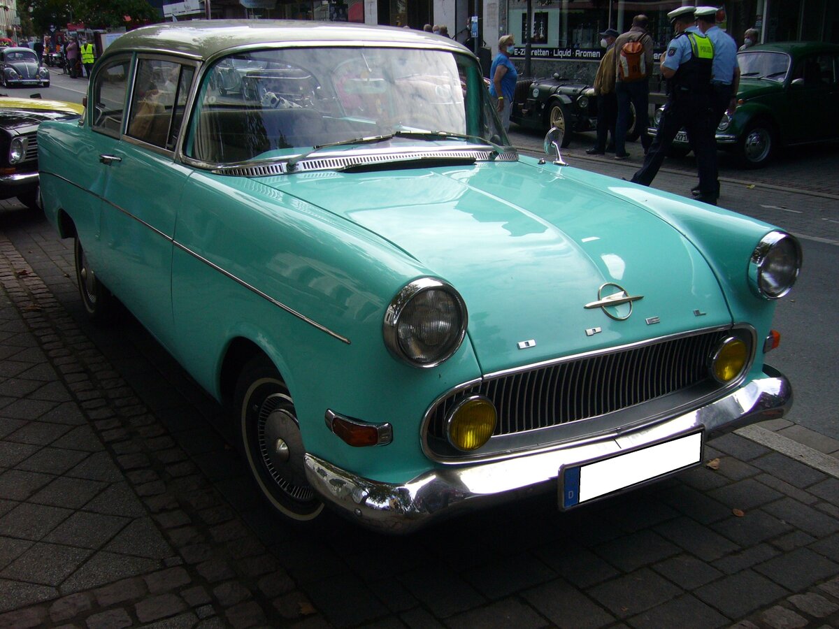 Opel 1200. Der Opel 1200 war ein Zwischentyp mit der Karosserie des Opel Olympia Rekord P1. Mit diesem Modell wollten die Rüsselsheimer die Zeit bis zur Einführung des neuen Opel Kadett überbrücken. Von August 1959 bis Dezember 1962 konnte Opel noch 67.952 Autos dieses Typs zu einem Preis ab DM 5835,00 verkaufen. Der Vierzylinderreihenmotor hat einen Hubraum von 1196 cm³ und leistet 40 PS. Die Höchstgeschwindigkeit wurde mit 119 km/h angegeben. Oldtimertreffen in Heiligenhaus am 12.09.2021.