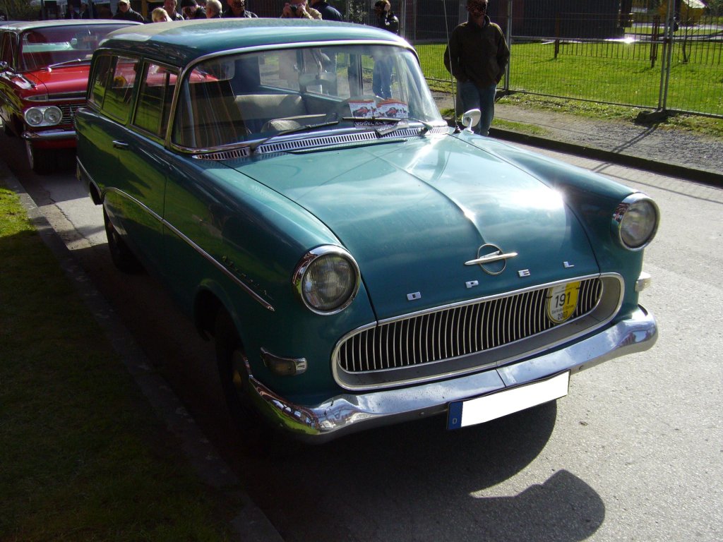 Opel Rekord P1 CarAvan. 1957 - 1960. Der P1 war die Sensation auf der Frankfurter Automobil Ausstellung des Jahres 1957. Der P1 CarAvan war wahlweise mit 1.488 cm³ oder 1.680 cm³ Hubraum lieferbar. Das Kombimodell verkaufte sich in 249.329 Einheiten. Davon wählten 120.801 Käufer den größeren 1.7l Motor. Ein solches Kombimodell war ab DM 6.845,00 zu haben. Oldtimertreffen Kokerei Zollverein am 01.04.2012.