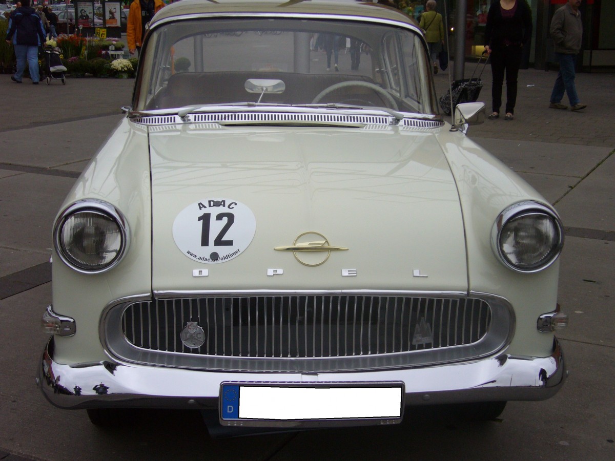 Opel Olympia Rekord P1 Sondermodell Ascona von GM Suisse. 1959 - 1960. Auf der rechten Seite des Kühlergrills kann man das Logo mit den drei Bergspitzen erkennen, mit denen die Opel aus dem Werk Biel versehen wurden. Oldtimertreffen "Sterkrader Tor" am 30.08.2014.