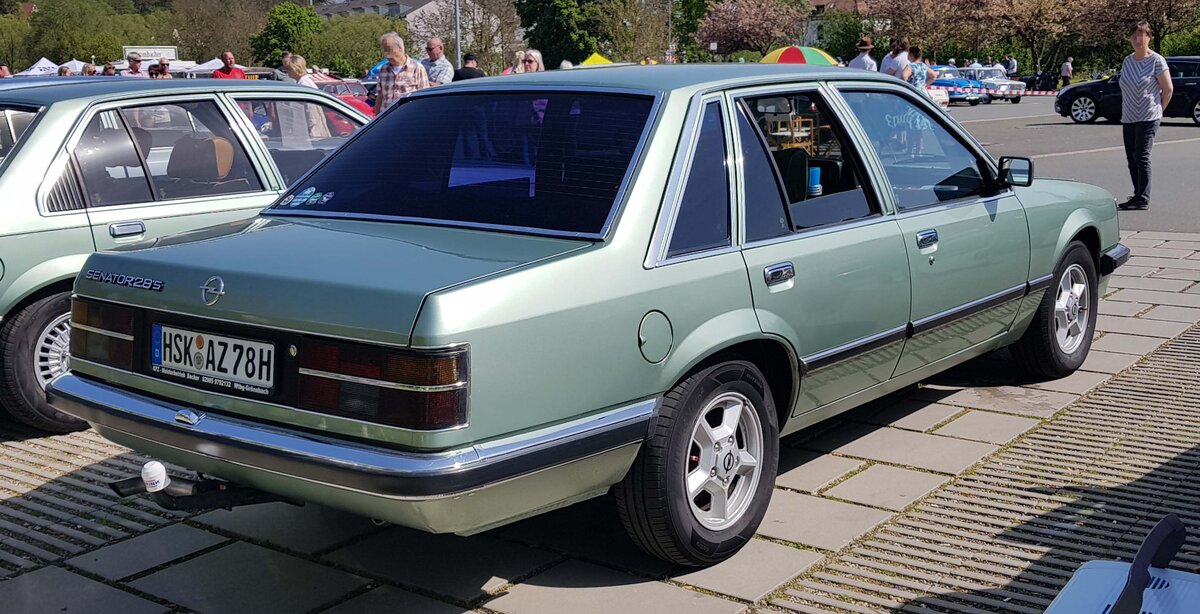 Opel Senator A1 2.5E. Der Senator stand ab März 1978 als Nachfolger der KAD-Baureihe bei den Händlern. Im Grunde war das Modell eine Ableitung vom Rekord E bzw. Commodore C, mit modifizierter Front und Heck. Angeboten wurden die Modelle zunächst mit einem 3.0 Liter Einspritzmotor und dem 2.8 Liter Vergasermodell aus dem Vorgängermodell Admiral. Ab Juli 1981 tauschte man bei Opel den 2.8 Liter Motor gegen den sparsameren 2.5 Liter Einspritzmotor aus dem Commodore aus. Ein solcher Senator schlug bei seiner Vorstellung mit einem Grundpreis von DM 27.200,00 zu Buche. Der gezeigte Wagen dürfte um einiges teurer gewesen sein, da er zusätzlich mit der sportlichen, aber aufpreispflichtigen, S-Ausstattung bestellt wurde. Der Sechszylinderreihenmotor hat einen Hubraum von 2490 cm³ und leistet 136 PS. Die Höchstgeschwindigkeit gab das Rüsselsheimer Werk mit 190 km/h an. Oldtimer- und Youngtimertreffen an Mo´s Bikertreff in Krefeld am 08.10.2023.