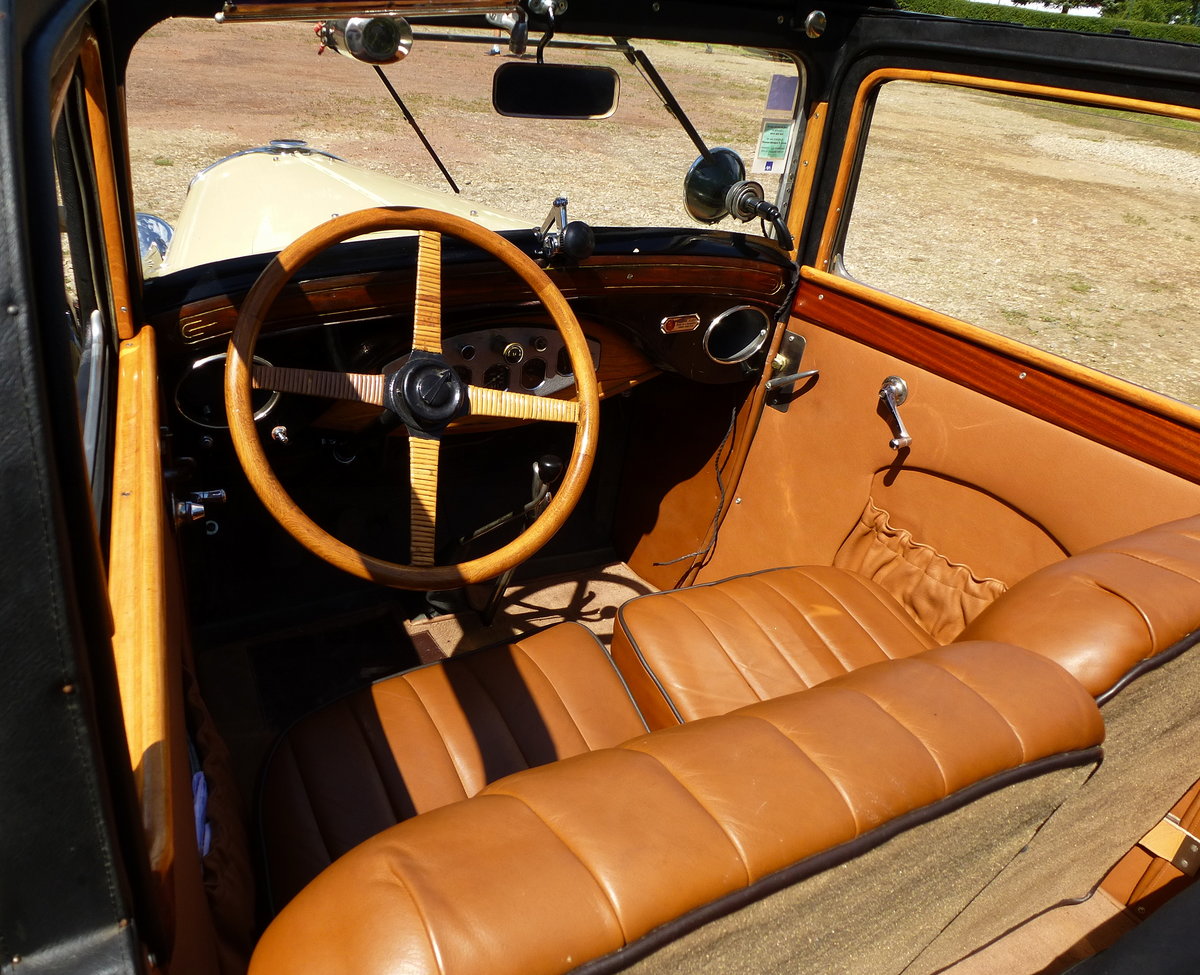Peugeot 201 Cabrio, Blick in den Innenraum, Bulldogtreffen Rheinhausen, Aug.2016