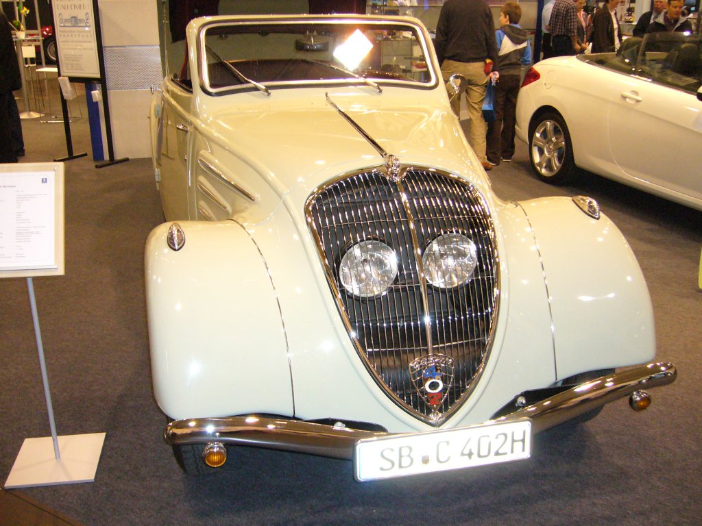 Frontansicht eines Peugeot 402 Eclipse 1935. Die Eclipse Modelle waren die Vorreiter der heutige Peugeot CC-Modelle. Technoclassica 04.04.2009.