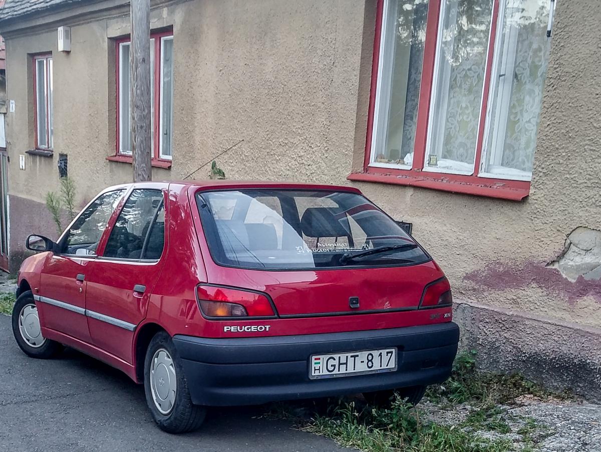 Rückansicht eines Peugeot 306, fotografiert in Pécs (HU), August, 2019.