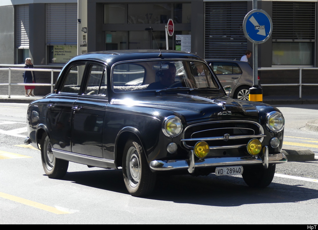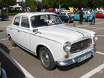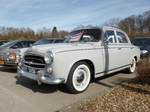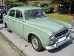 Peugeot 403 B7 Berline, produziert von April 1955 bis Februar 1967. Dem 403 war aufgrund seiner Zuverlässigkeit und Robustheit nicht nur in Frankreich ein großer Verkaufserfolg beschienen. Es gab diesen Wagen in etlichen Motorisierungen als Benziner oder Diesel. Hier wurde ein Modell von vor 1959 abgelichtet, das noch den Löwenkopf auf der Motorhaube trägt. Dieser musste 1959 aufgrund einer gesetzlichen Regelung aus Unfallschutzgründen wegfallen. Oldtimertreffen beim Theater an der Niebu(h)rg am 20.10.2024 in Oberhausen/Rhld.