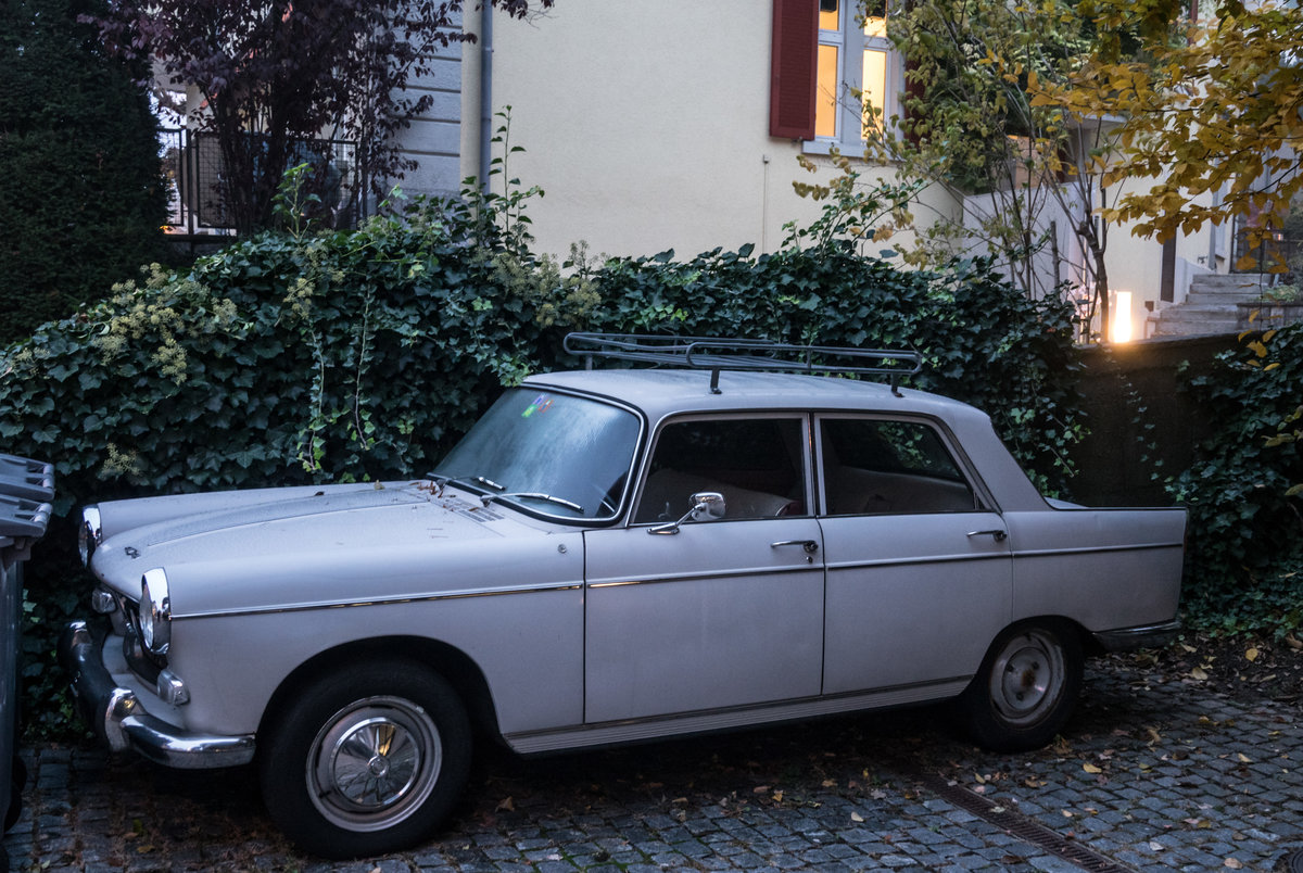 Peugeot 404 auf einem öffentlichen Parkplatz, gesehen in Zürich am 09.11.2018.