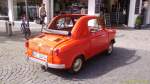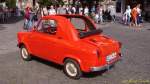 Vespa 400. 1957 - 1961. Der Kleinwagen wurde 1957 auf dem Pariser Autosalon vorgestellt. Das hübsche, kleine Auto wurde ca. 30.000 mal im französischen Piaggiowerk Forchambault/Burgund hergestellt. In Frankreich wurde auch der Hauptanteil dieser Fahrzeuge verkauft. Der 2-Zylinderzweitaktmotor leistet 20 PS aus 400 cm³ Hubraum. Kleinwagentreffen Krefeld am 31.05.2018. Michael H.