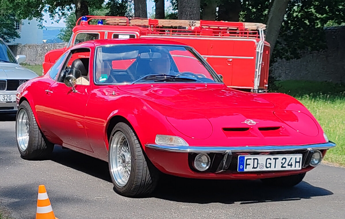 =Pontiac Grand Prix, Bj. 1966, 6,4 l, ca. 270 PS, auf dem Weg zur Oldtimerausstellung bei Schloss Fasanerie, 06-2025