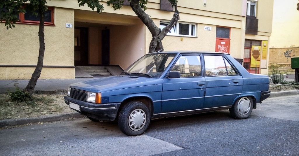 Dieser Renault 9 parkierte am 18.07.2012 vor einem Hochhaus.