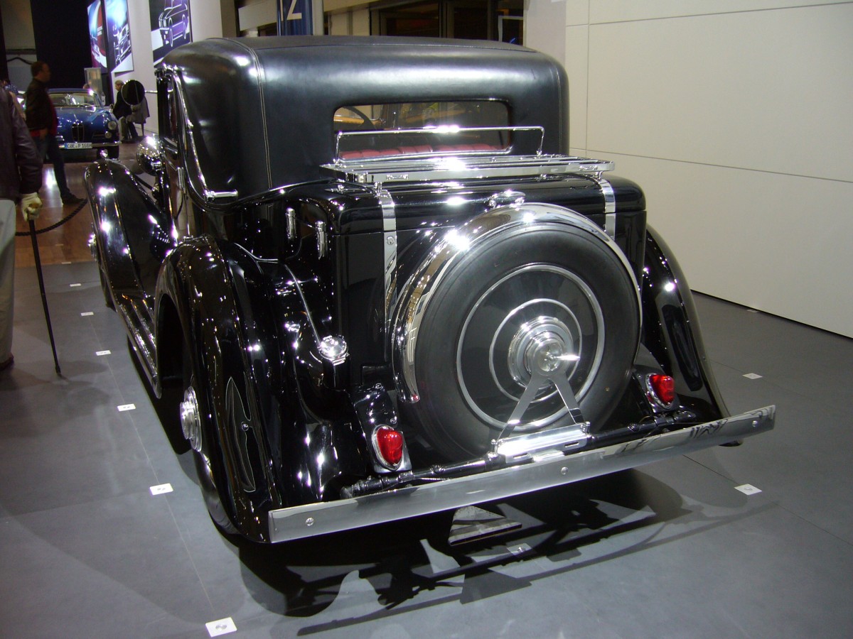 Heckansicht eines Rolls Royce Phantom II Continental Gumey Nutting Fixed Head Coupe von 1933. Techno Classica am 18.04.2015.