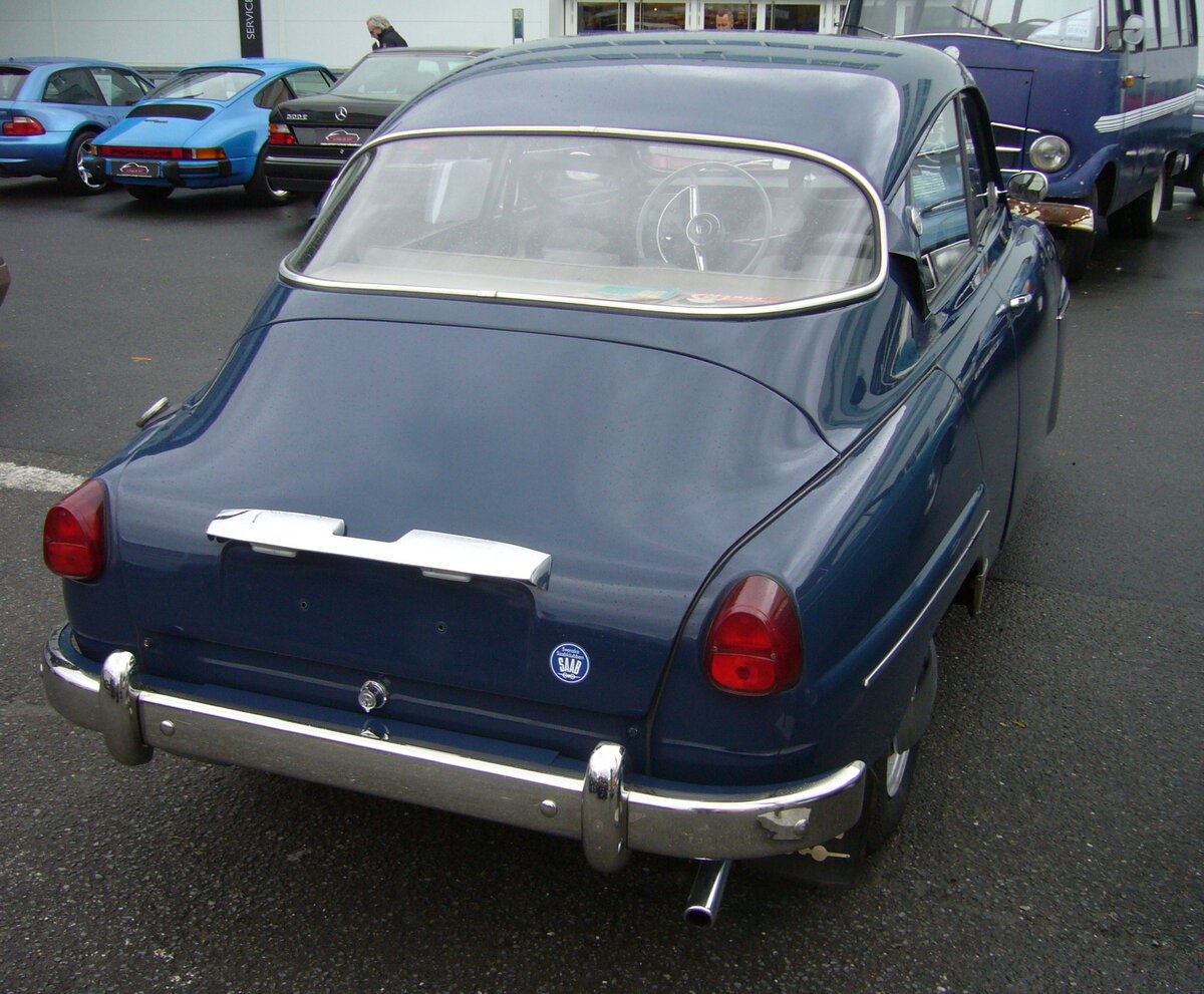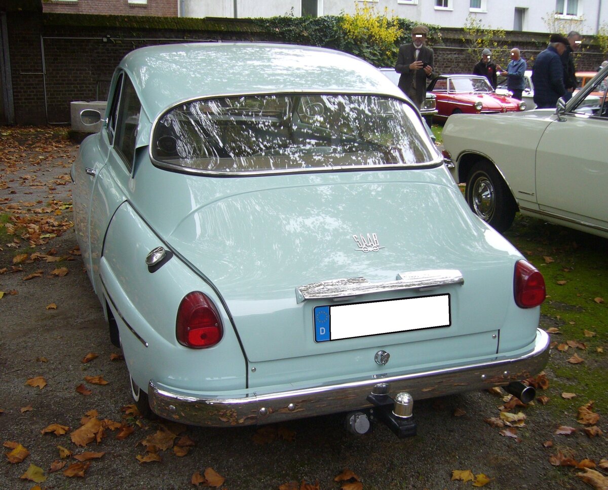 Heckansicht eines Saab 96 aus dem Jahr 1963. Oldtimertreffen am Theater an der Niebu(h)rg am 19.10.2025 in Oberhausen/Rheinland.