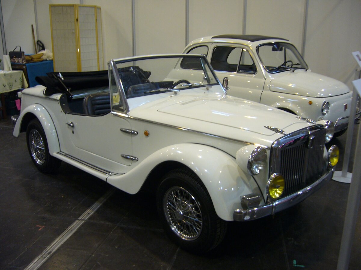 Siata Daina Gran Sport aus dem Jahr 1952. Die im Jahr 1926 in Turin gegründete Marke Siata war immer sehr eng mit dem Fiat-Konzern verbandelt. Man beschäftigte sich dort hauptsächlich mit dem Tuning von Fiat-Fahrzeugen. In den 1950´er brachte man einige eigenen Modelle auf den Markt. Unter anderem das Modell Daina, das es als Gran Sport Coupe und als Convertible gab. Zwischen 1950 und 1958 entstanden 233 Daina-Modelle, von denen heute noch sechs oder sieben existieren sollen. Angetrieben wird der Wagen von einem Vierzylinderreihenmotor aus dem Hause Fiat. Dieser Motor hat einen Hubraum von 1395 cm³ und leistet 70 PS. Techno Classica Essen am 13.04.2023.