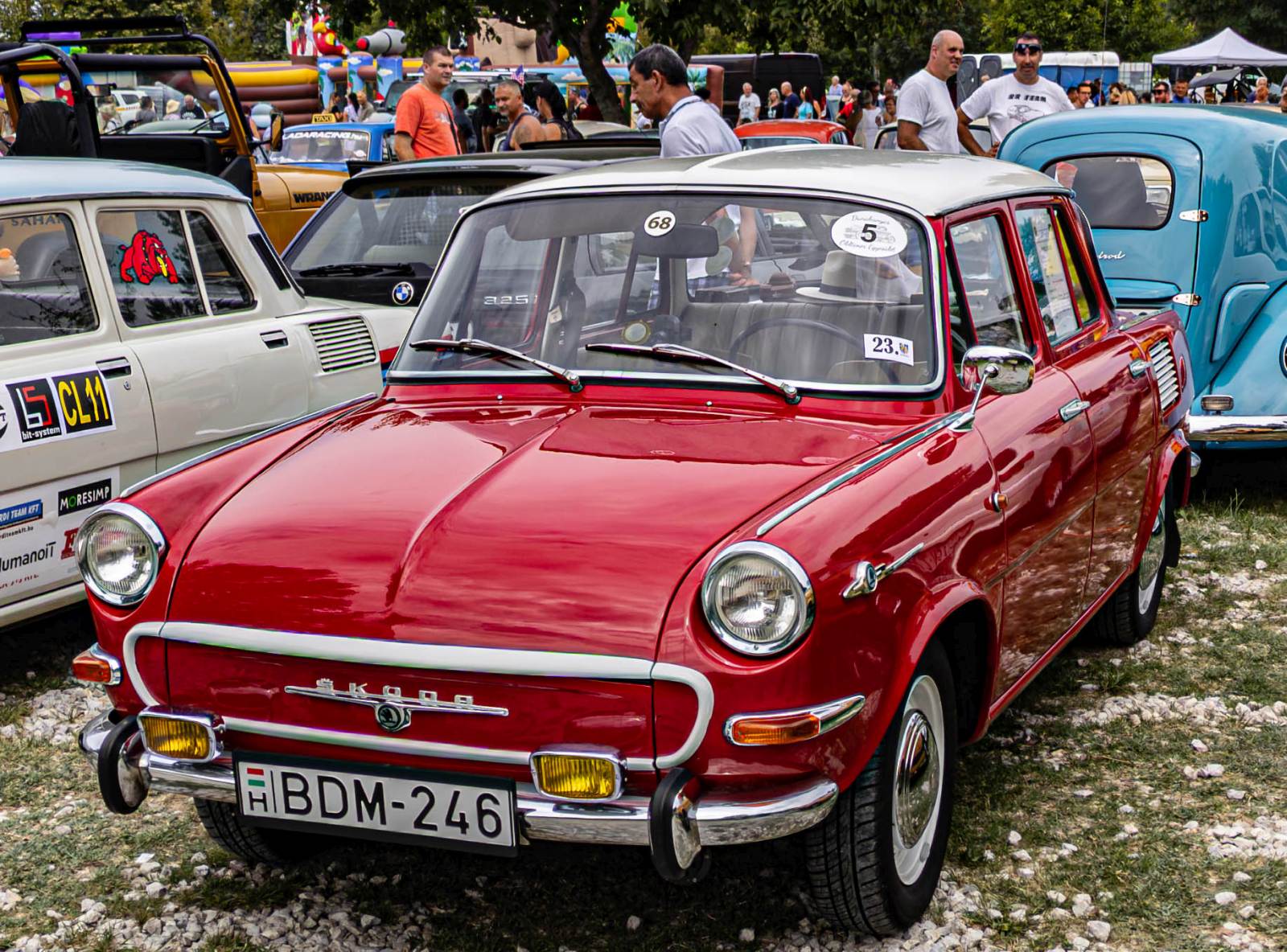 Skoda 1000 MB, gebaut in den Jahren von 1964 bis 1969. Von diesem Modell wurden ca. 410.000 Einheiten produziert. Das MB in der Typbezeichnung steht übrigens für den Produktionsort, das Skoda-Stammwerk in Mlada Boleslav. Der im Heck verbaute Vierzylinderreihenmotor leistet 42 PS aus einem Hubraum von 988 cm³. Charakteristisch für dieses Modell sind die "Elefantenohren" genannten Lufteinlässe für den Motor an den hinteren Kotflügeln. Industriemuseum Osnabrück im Jahr 2019.
