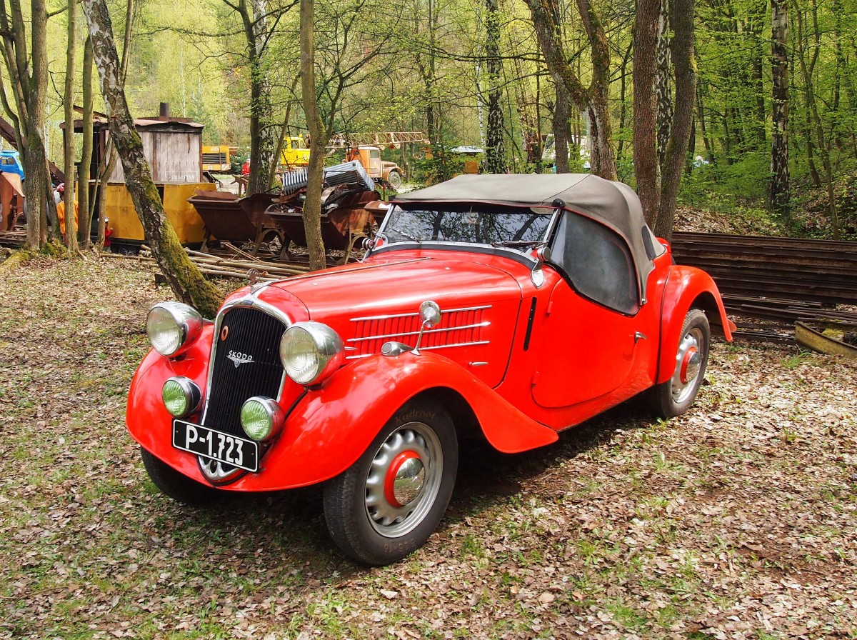 Škoda Popular Monta Carlo mit Dach (Baujahr 1936) in skansen Solvay Steinbrüche am 25.4.2015.