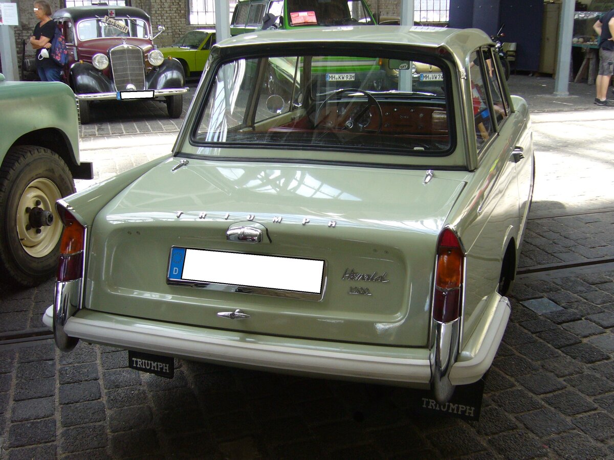 Heckansicht einer Triumph Herald 1200 Limousine. Oldtimertreffen an der "Alten Dreherei" in Mülheim an der Ruhr am 19.06.2021 und 20.06.2021.