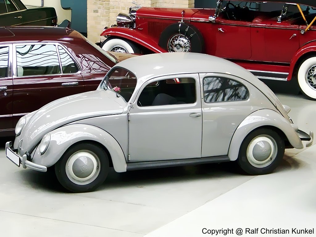 ich denke Du hast dich ein wenig geirrt bzw. verschrieben. Das ist definitiv ein "Brezelkäfer" der Baujahre 1949-1953. Meines Wissens hatten die Export-Modelle verchromte Radkappen und Lampenringe.