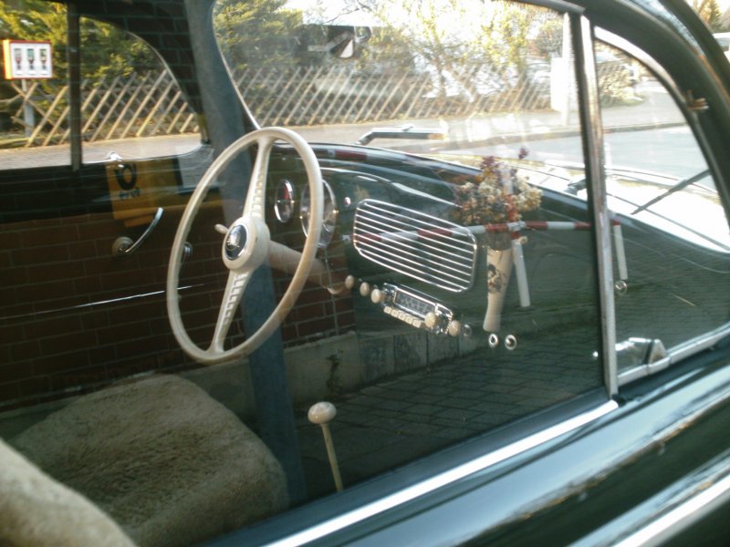 VW Käfer Brezelfenster, gesehen am 23.05.205 beim Autojumble.