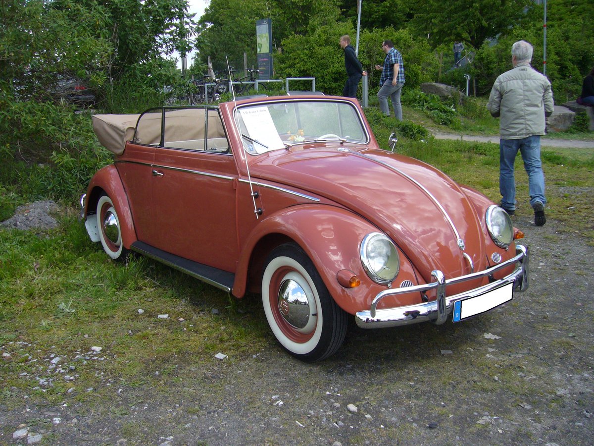 VW Typ 15 von 1956. Das Karmann Cabriolet hat einen luftgekühlten Vierzylinderboxermotor, der aus 1192 cm³ 30 PS leistet. Dieser Typ 15 ist mit den damals in den USA vorgeschriebenen Blinkern ausgerüstet. In den Staaten verpasste man dem Käfer die Warzenblinker des Typ 2 (VW-Bus) und schweißte die Schächte der Winker einfach zu. Youngtimertreffen Zeche Ewald in Herten am 12.05.2019.