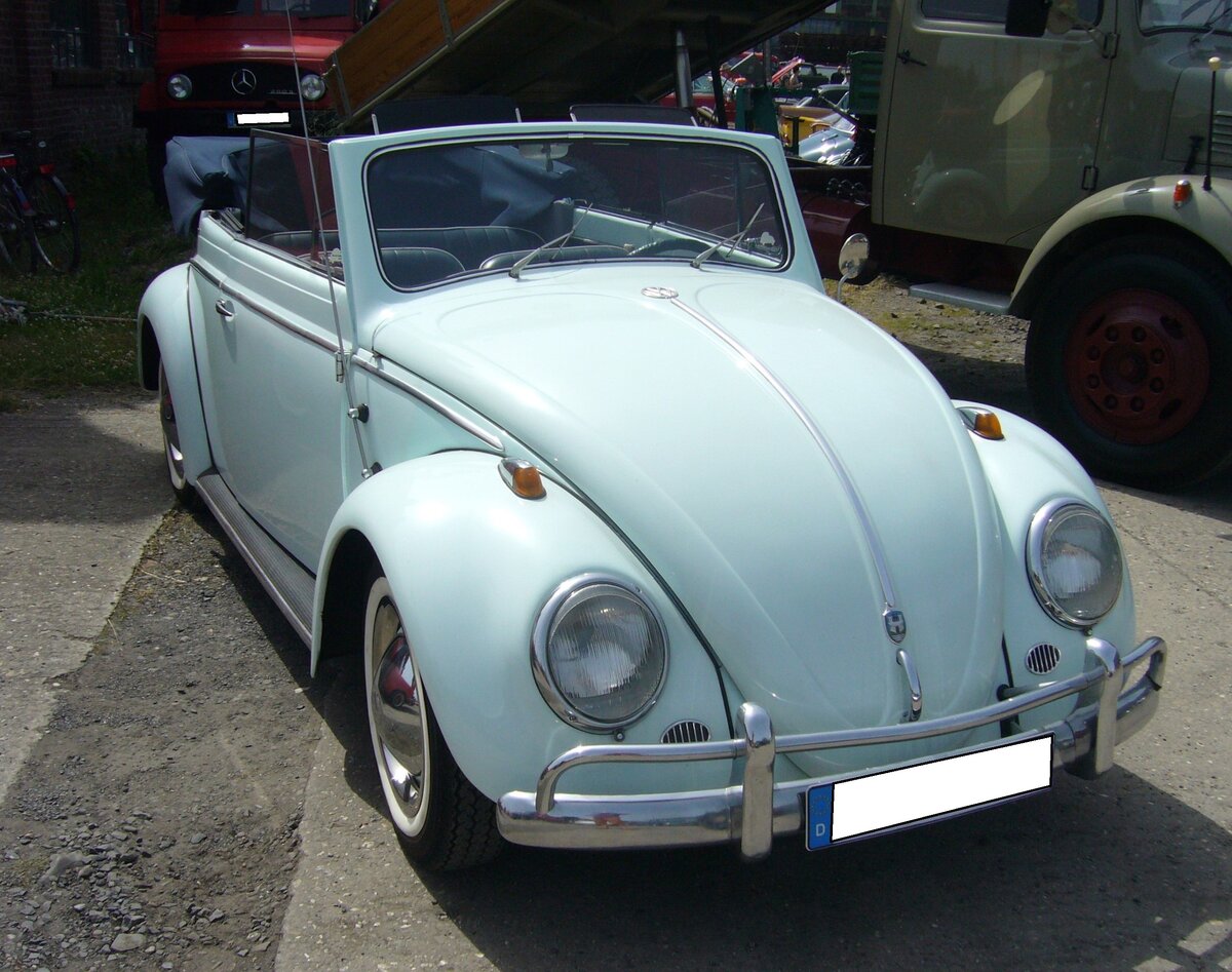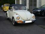 VW Typ 15 aus dem Jahr 1956. Das Karmann Cabriolet hat einen, im Heck verbauten, luftgekühlten, Vierzylinderboxermotor, der aus einem Hubraum von 1192 cm³ 30 PS leistet. Oldtimertreffen an der "Alten Dreherei" in Mülheim an der Ruhr am 18.06.2022.
