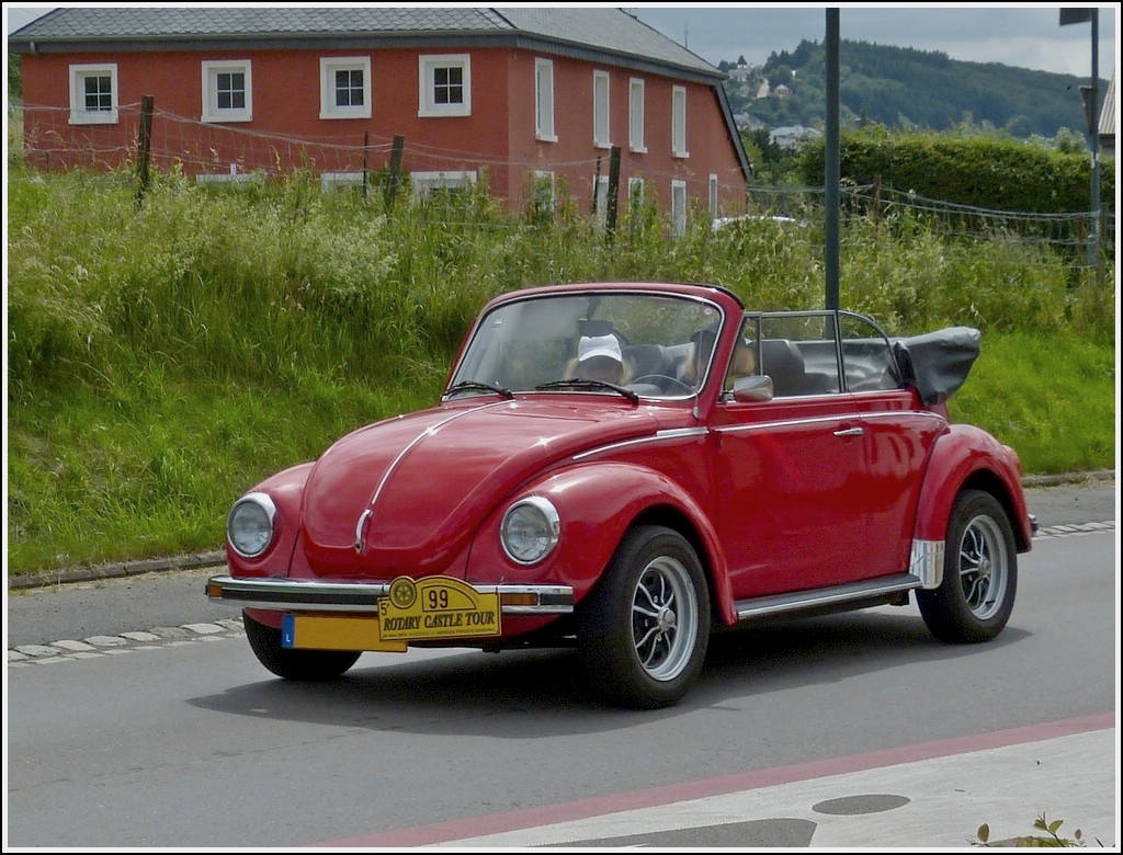 VW Käfer 1303 Cabrio, Bj 1978, bei herrlichem Wetter, als Teilnehmer der Rotary Castle Tour durch Luxemburg. 30.06.2013