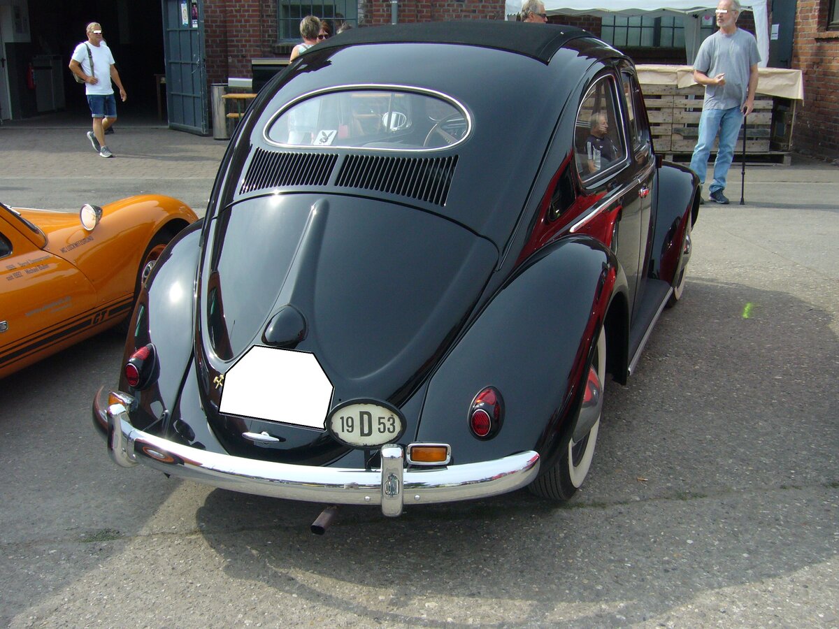 Heckansicht eines VW Typ 1 "Ovali-Käfers" aus dem Jahr 1953. Oldtimertreffen an der "Alten Dreherei" in Mülheim an der Ruhr am 18.06.2023.
