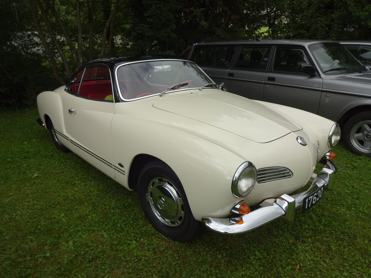 VW Typ 14 Karmann-Ghia Coupe, produziert in den Jahren von 1955 bis 1973 auf dem Chassis des Typ 1 (Käfer). Hier wurde ein Typ 14 abgelichtet, der zwischen August 1969 und August 1971 produziert wurde. Er hat schon die rechteckigen, vorderen Blinkleuchten und die großen, hinteren Rückleuchten, trägt aber noch die "alten Export-Stoßfänger". Der im Heck verbaute, luftgekühlte, Vierzylinderboxermotor hat einen Hubraum von 1493 cm³ und leistet 44 PS. Die Höchstgeschwindigkeit wurde mit 136 km/h angegeben. Oldtimertreffen am Theater an der Niebu(h)rg am 19.10.2025 in Oberhausen/Rheinland. Michael H.