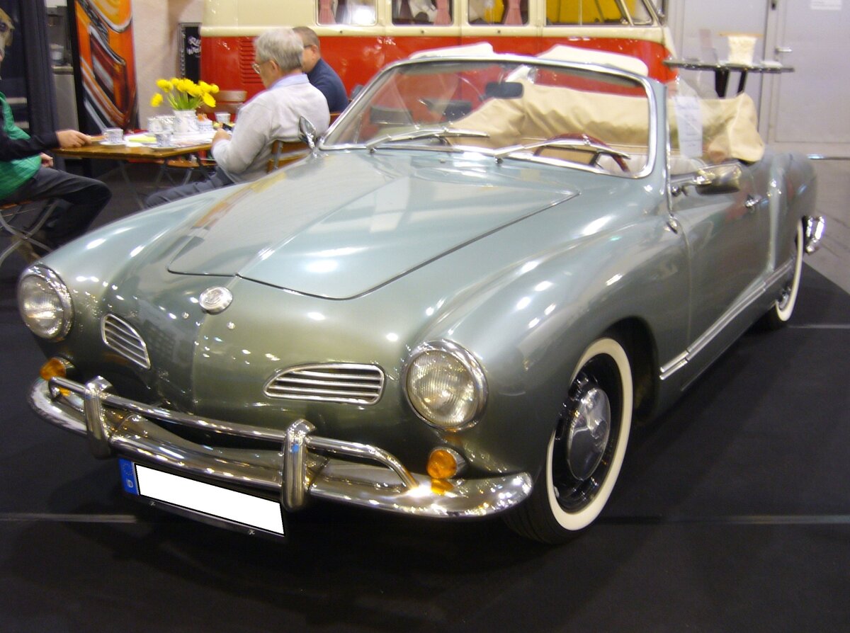 VW Typ 14 Karmann-Ghia Cabriolet, wie es in den Jahren von 1965 bis 1969 produziert wurde. Das gezeigte Cabriolet im Farbton neptunblau lief im Jahr 1967 bei Karmann in Osnabrück vom Band. Angetrieben wird dieser Typ 14 von einem im Heck verbauten, luftgekühlten, Vierzylinderboxermotor mit einem Hubraum von 1493 cm³ und einer Leistung von 44 PS. Techno Classica Essen am 05.04.2024.