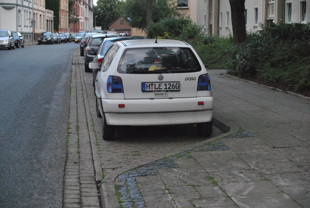 Weißer VW Polo mit blaunen Heckleuchten am 16.08.10 in der Westerstraße/Lehrte.