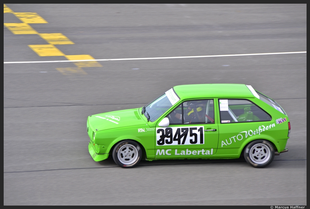 Ein VW Polo beim 45. ADAC-Renn-Slalom an der Steintribüne in Nürnberg am 14. April 2013.