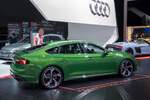 Rückansicht: Audi RS5 Sportback in grün, ausgestellt auf dem Autosalon Genf 2019.