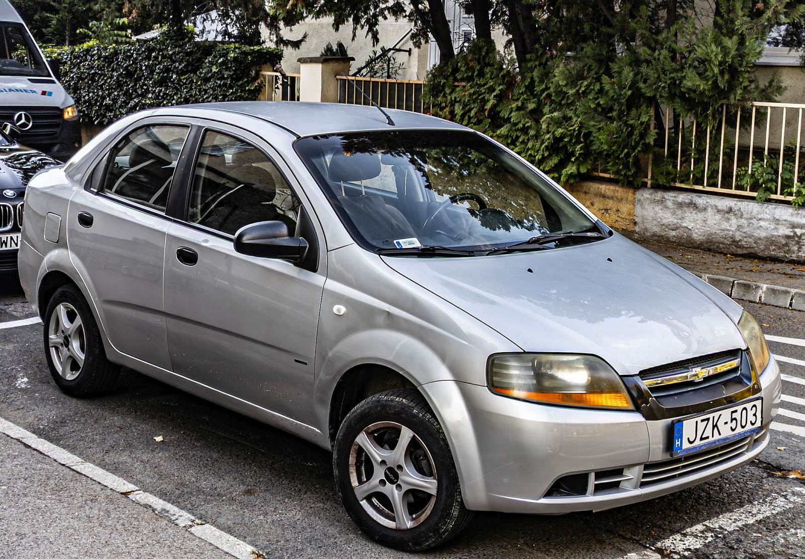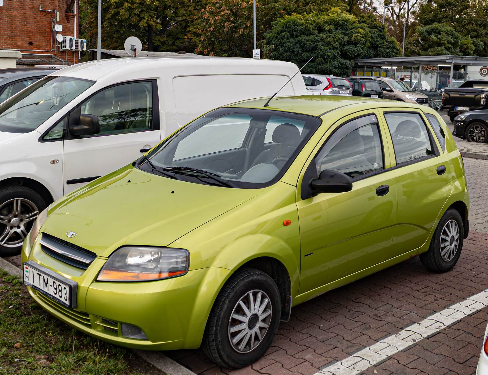 Diesen Daewoo Kalos (fünftürer schrägheck, Farbe: Yellow Green) habe ich in 09.2024 gesehen.