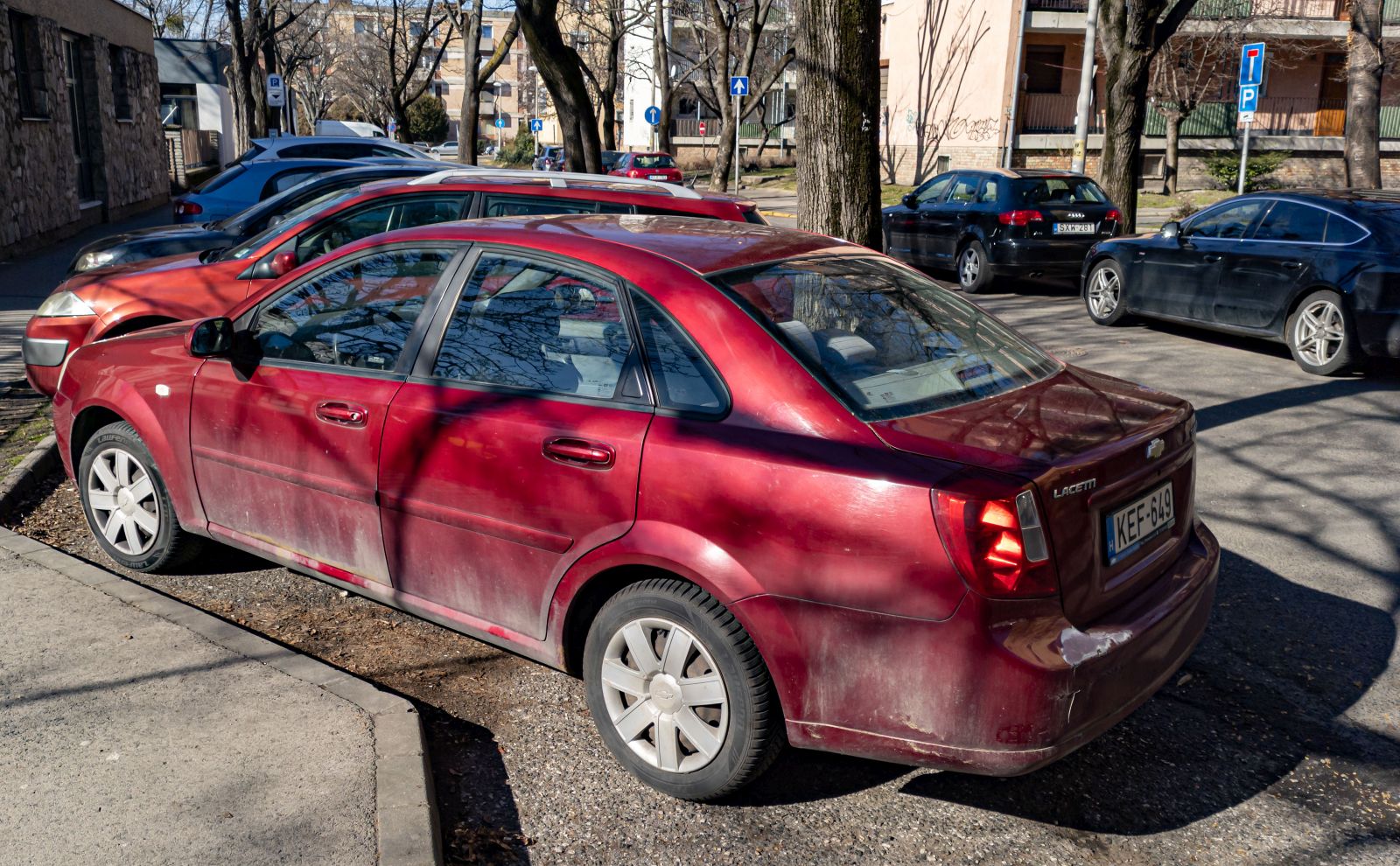 Rückansicht: Chevrolet Lacetti Sedan in Arizona Rot (oder Red Rock). Foto: 02.2022