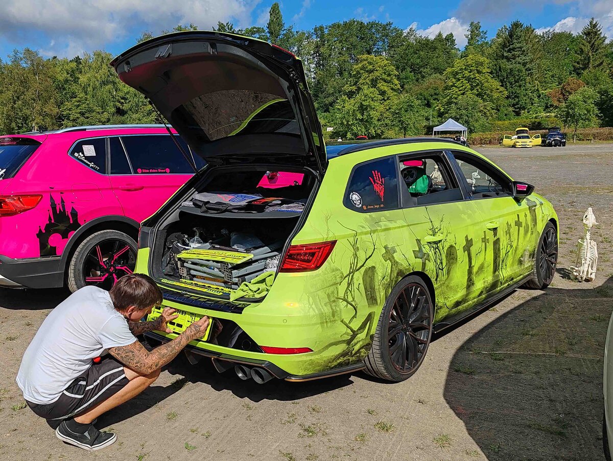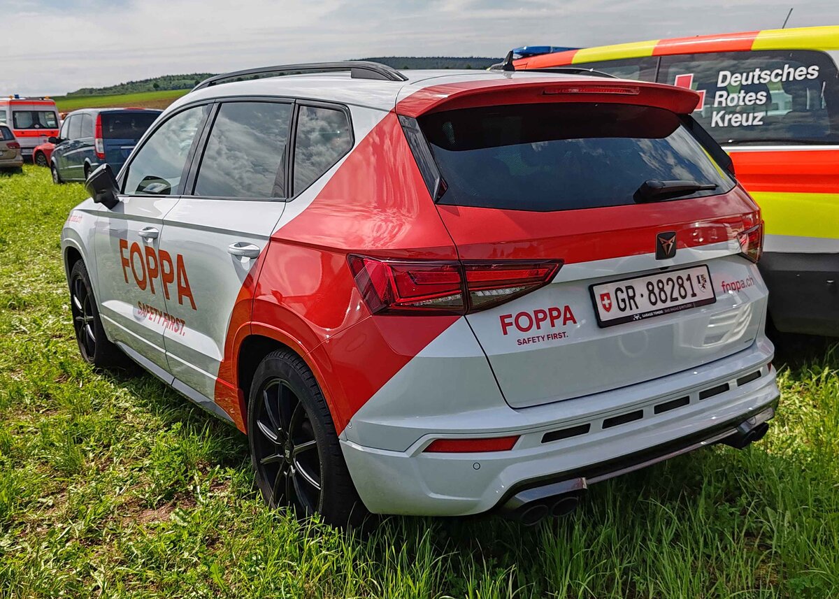 =Cupra Leon der Firma FOPPA aus der Schweiz steht im Mai 2024 auf dem Besucherparkplatz der RettMobil in Fulda