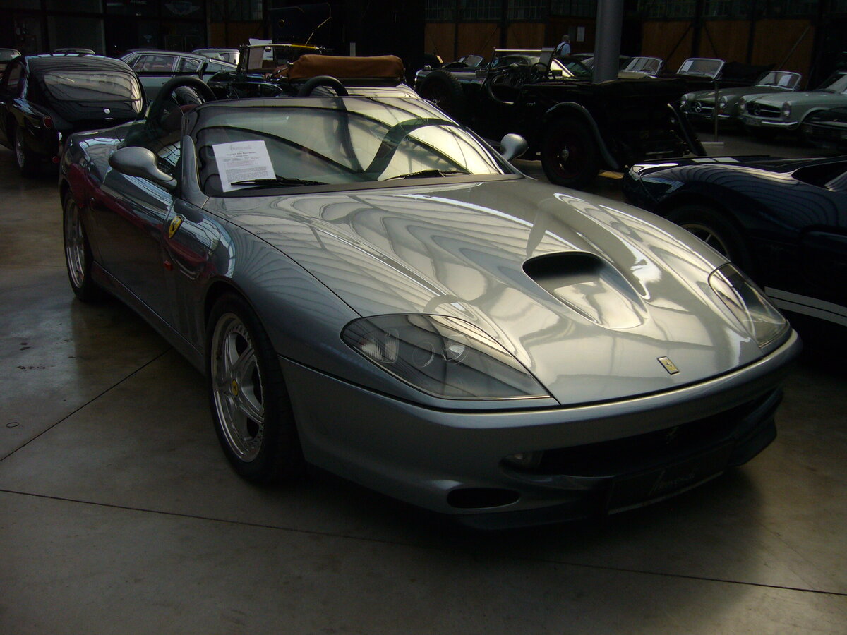 Ferrari 550 Barchetta Pininfarina aus dem Jahr 2001. Den Barchetta Pininfarina genannten Roadster, gab es nur im letzten Modelljahr des bereits 1996 als Coupe vorgestellten Ferrari 550. Der V12-Motor leistet 485 PS aus 5473 cm³ Hubraum. Classic Remise Düsseldorf am 15.08.2021.