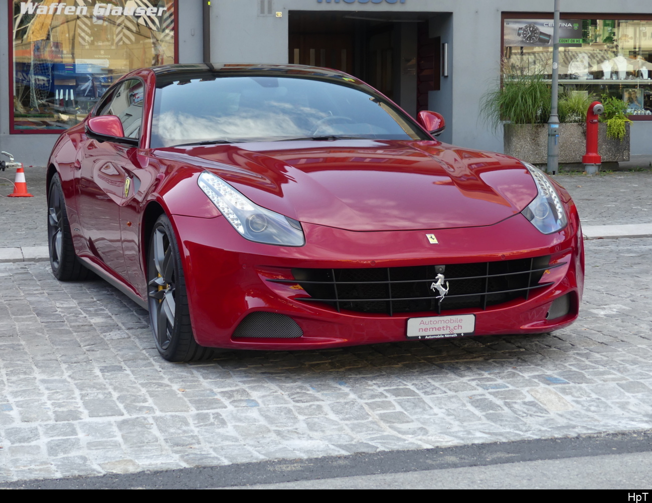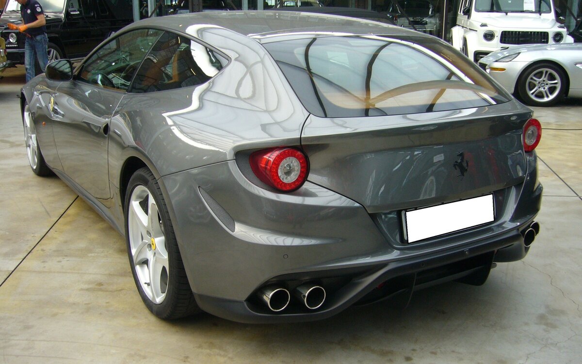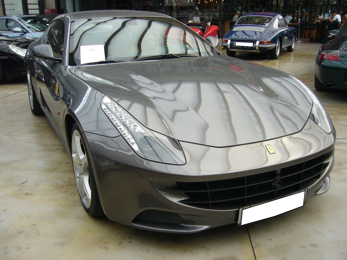 Ferrari FF V12. Der FF V12 wurde von 2011 bis 2016 gebaut. Das FF steht für four four, bedeutet im Klartext: vier Sitze und Vierradantrieb. Der Vierradantrieb bei diesem Modell war ein Novum der Marke mit dem cavallo rampante im Firmenlogo. Der V12-Motor hat einen Hubraum von 6262 cm³ und leistet 660 PS. Dieses Shooting-Break Modell beschleunigt innerhalb von 11 Sekunden von 0 auf 200 km/h. Die Höchstgeschwindigkeit liegt bei ca. 330 km/h. Angeblich wird dieses Modell im Wüstenstaat Dubai teilweise als Streifenwagen eingesetzt. Classic Remise Düsseldorf am 20.09.2023. Michael H.