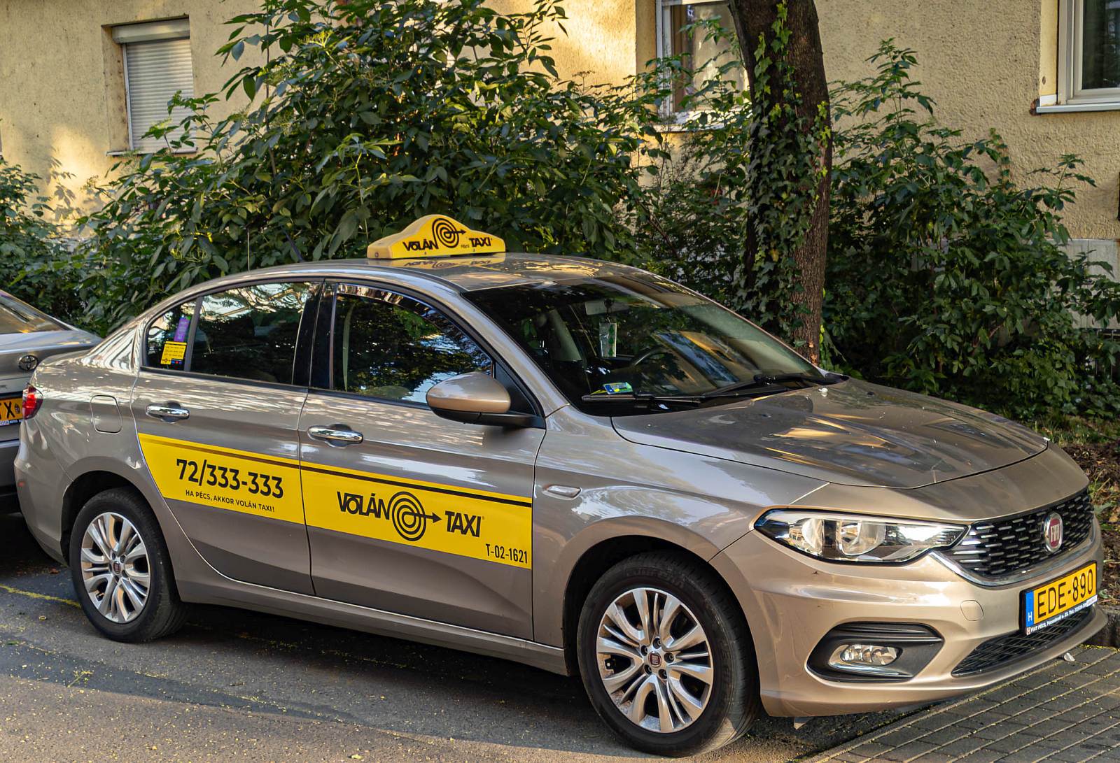 Fiat Tipo (Typ 356 ab 2015) als Taxi. In Ungarn ist diese Generation des Tipo ziemlich beliebt unter den Taxifahrern, da das Auto billig und zuverlässig ist. Zudem ist das Raumangebot innen überdurchschnittlich. Foto: Juni, 2025. B. Mayer