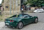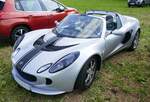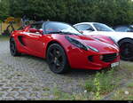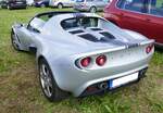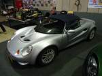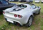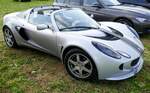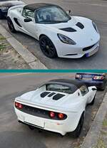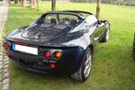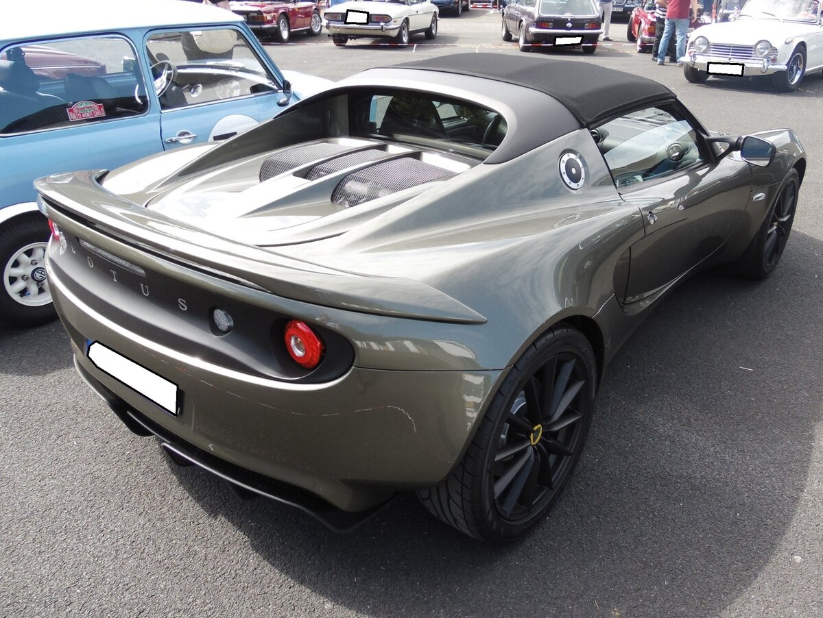 Lotus Elise Series 3 aus dem Jahr 2015. Mit dem Wahlspruch des Lotus-Gründers Colin Chapman (*1928 +1982) "Mehr Leistung macht auf der Geraden schneller, weniger Gewicht macht überall schneller" platzierte die britische Automanufaktur 1996 das erste Modell der neuen Baureihe "Elise". Ab Frühjahr 2010 konnte dann die dritte Serie dieses, recht spartanisch ausgestatteten, Sportwagens bestellt werden. Der gezeigte Wagen wurde erstmalig im Juni 2015 zugelassen. Für Vortrieb sorgt ein Motor aus dem Hause Toyota. Der Vierzylinderreihenmotor hat einen Hubraum von 1598 cm³ und leistet 136 PS. Bei einem Leergewicht von nur890 Kilogramm hat der Motor kein Problem damit, diesen Sportwagen auf knapp über 200 km/h zu beschleunigen. Classic Remise Düsseldorf am 11.01.2025.