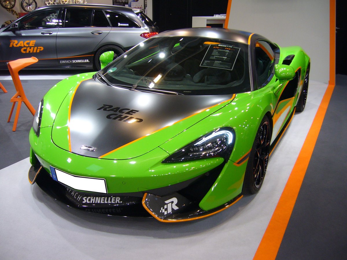 McLaren 570S Coupe. Der kleine Sportwagen der McLaren Automanufaktur wird seit Oktober 2015 in kleinster Stückzahl produziert. Im Juni 2017 wurde noch eine Roadster Version vorgestellt. Der als Mittelmotor verbaute V8-motor hat einen Hubraum von 3799 cm³ und leistet, dem Modellnamen entsprechend 570 PS. Die Höchstgeschwindigkeit dieses straßentauglichen Boliden liegt bei ca. 330 km/h. Essen Motor Show am 09.12.2017.