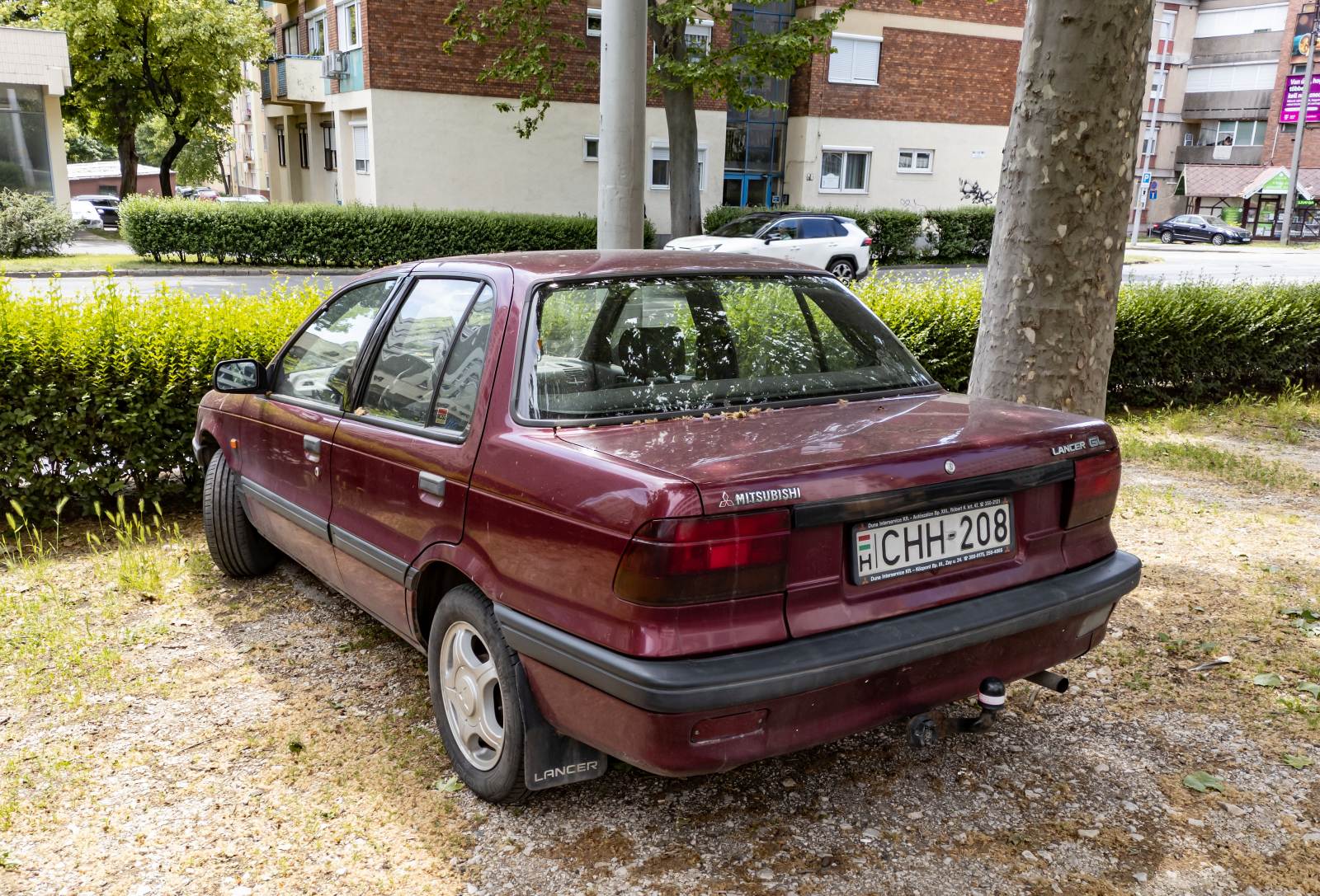 Rückansicht: roter Mitsubishi Lancer Mk4. Foto: Mai, 2022.