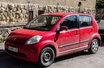 Zweimal Nissan Note (beide aus der ersten Generation, links pre-Facelift, rechts post-Facelift). Die Aufnahme stammt von Mai, 2024.