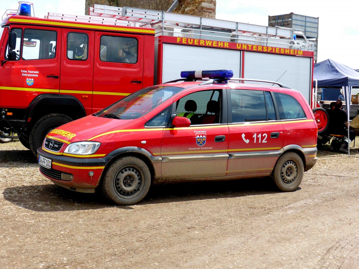 auch die Feuerwehren aus der Umgebung waren eingesetzt beim FENDT-Feldtag in Wadenbrunn, August 2014. Hier der Opel Zafira der Feuerwehr von Kolitzheim.