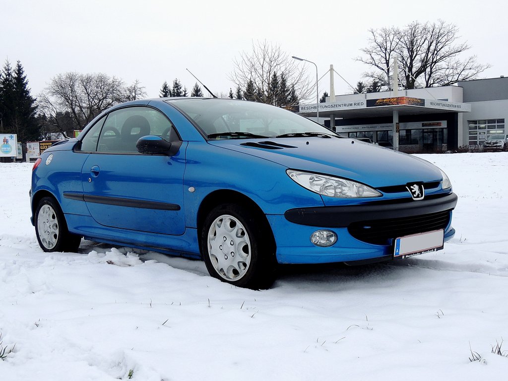 Peugeot 206 C-Cabriolet Coupe, hat einen Parkplatz auf einer schneebedeckten Wiese auserkoren; 130216