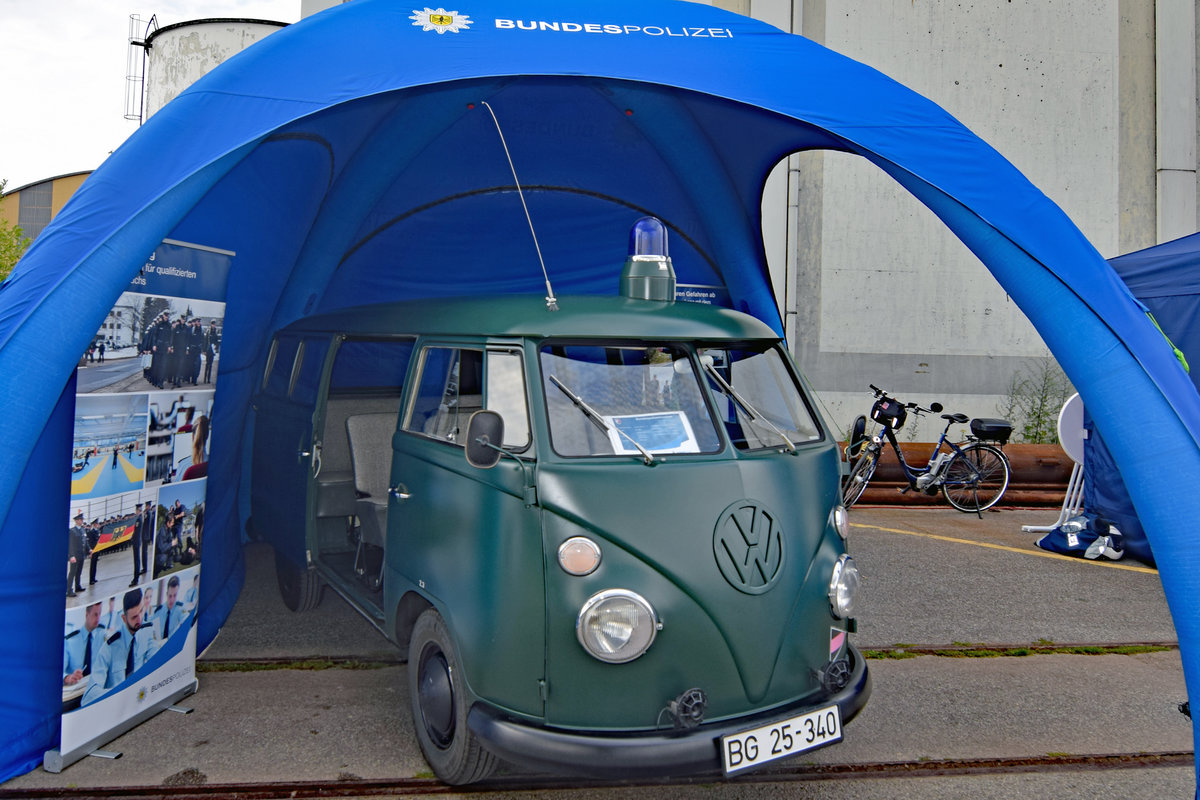 VW T1 des Bundesgrenzschutzes. Das Fahrzeug, im Juli 2019 in Neustadt/Holstein fotografiert, wird aktuell noch von der Bundespolizei für besondere Zwecke (z.B. Ausstellungen) eingesetzt