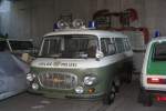 Beim Eisenbahnfest des Traditions BW in Staßfurt war am 24.09.2015 auch dieses Polizei Fahrzeug ausgestellt. Nach meinem Dafürhalten handelt es sich dabei um einen Klein LKW der Marke Robur, der früher als Lautsprecherwagen der Volkspolizei der DDR verwendet wurde.