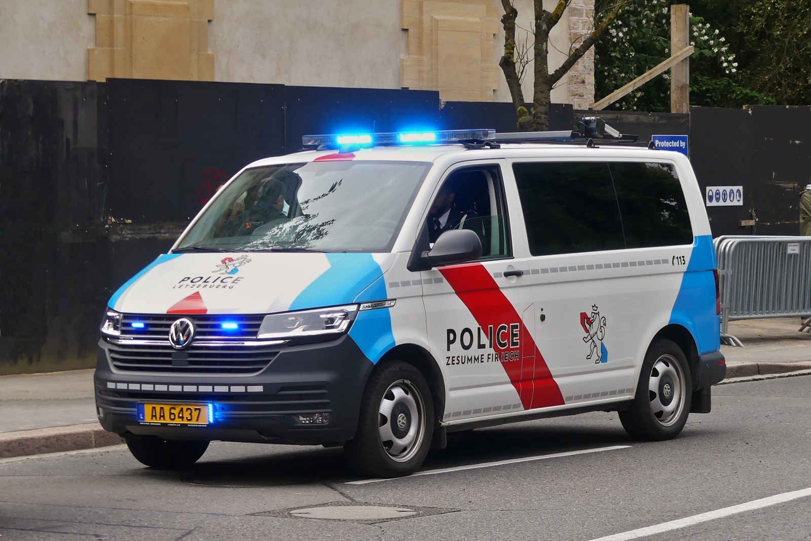 VW T6, der luxemburgischen Polizei, aufgenommen bei der Militärparade in der Stadt Luxemburg. 23.06.2024