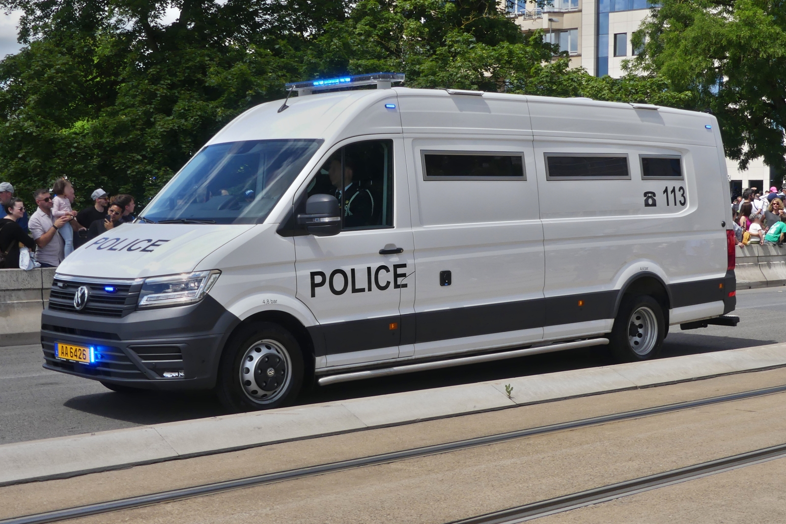 VW Crafter, Gefangenentransporter der Polizei, fuhr bei der Militärparade in der Stadt Luxemburg mit. 23.06.2024