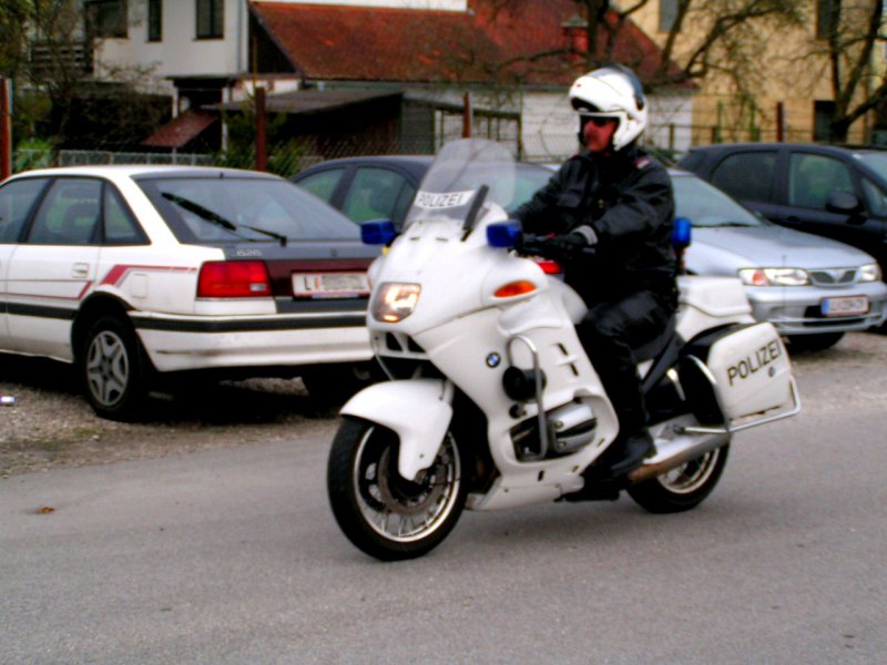 "Weisse-Maus" eskortiert anlässlich des OÖ-Derby einige Fan-Busse zum Rieder Stadion; 080412