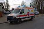 ASB Frankfurt Katastrophenschutz Mercedes Benz Sprinter KTW (Sama Frankfurt 61/93-5) am 22.03.25 bei der FraRescueFusion Katastrophenschutzübung in Osthafen