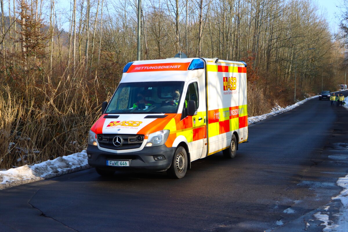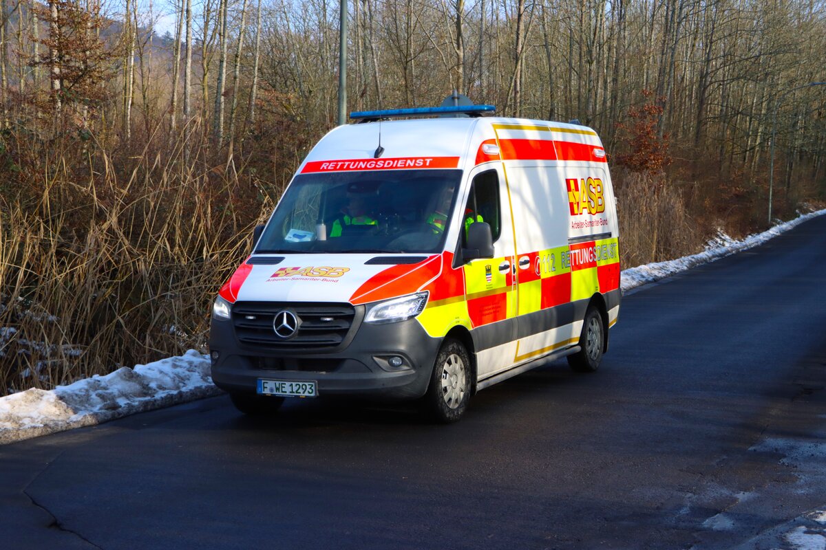 ASB Wetterau Mercedes Benz Sprinter KTW beim Abrücken am 31.01.26 nach einer Großübung in Büdinger Gewerbegebiet
