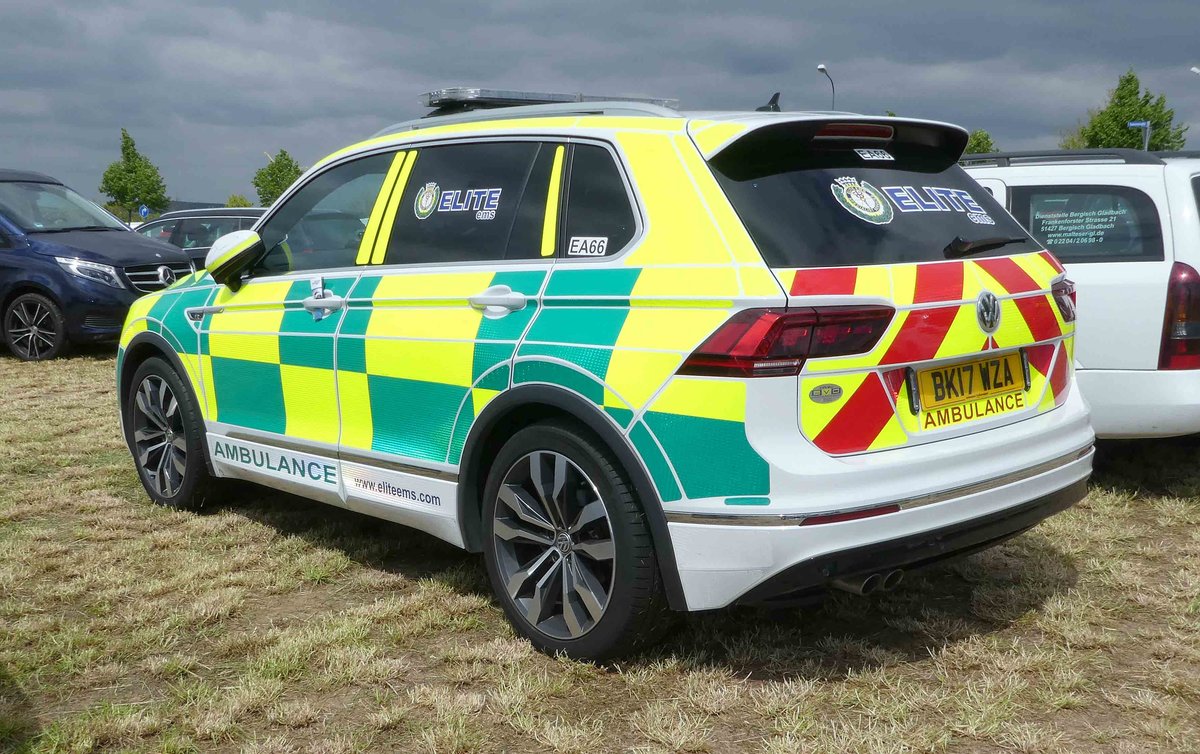 =VW Tiguan von  eliteems  aus Großbritannien steht auf dem Besucherparkplatz der Rettmobil 2019 in Fulda, 05-2019