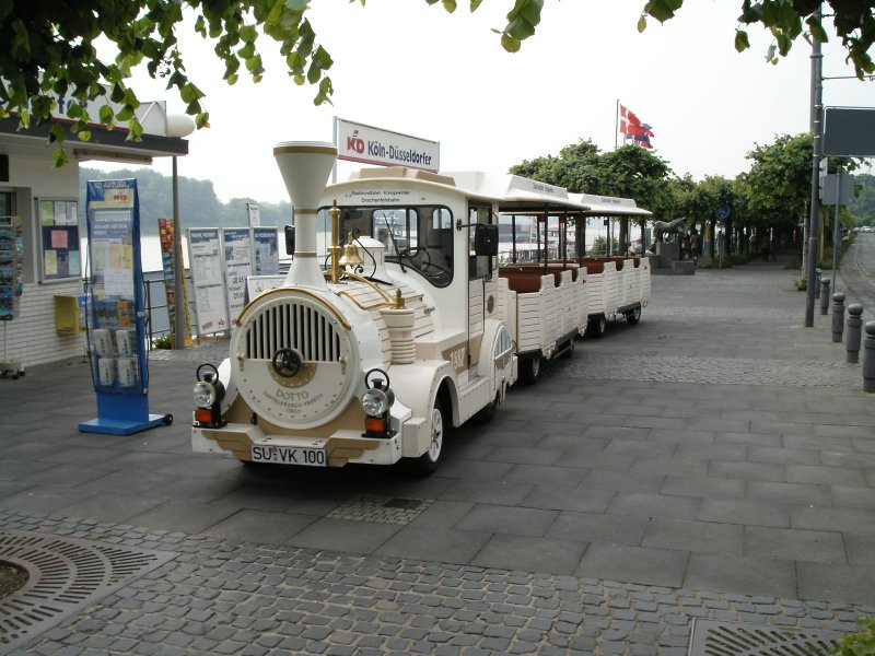 Eine Stadtrundfahrt-Bahn auf der Rheinpromenade in Königswinter.